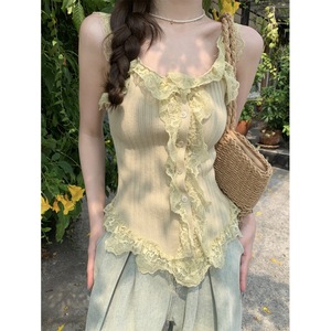夏季新款设计感蕾丝拼接无袖背心吊带女夏季纯欲修身显瘦百搭短款