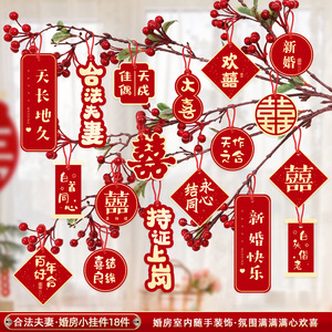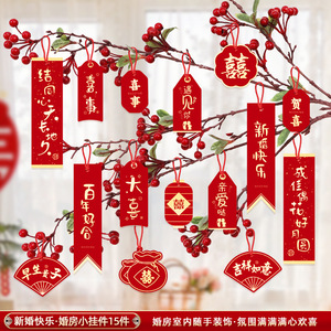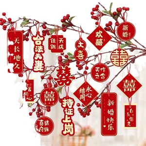 結婚の喜びの字の小さいペンダントのウェディングルームの装飾は男性の女性の方の客間の寝室の盆栽のペンダントネットの赤い高級感を配置します。