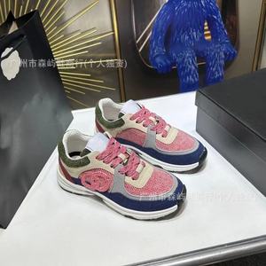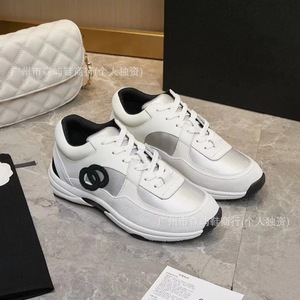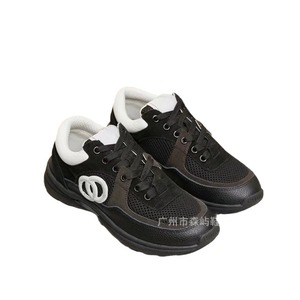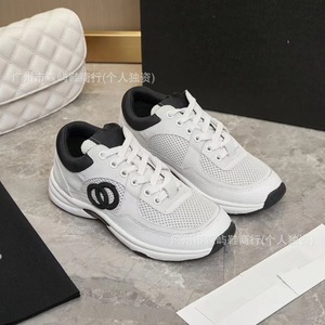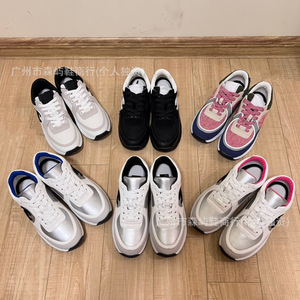 2024新型本革小香風運動靴の厚い底のカジュアルな通気性ネットの厚い底のお父さんの靴の白黒のパンダの靴