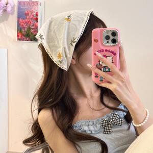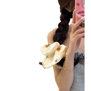 森系クリームの黄色のデイジーの花の大腸の輪の三角巾のフランスの少女の刺繍の不規則な三角巾のレースのヘアバンド