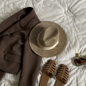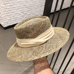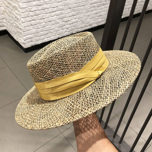 韓国ins草編網紅平頂礼帽子女性欧米風英倫ファッション旅行休暇透かして日よけ帽子