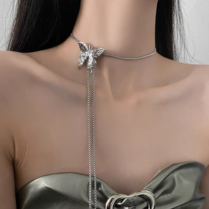 大小の蝶流蘇ネックレス (チタン鋼チェーン)