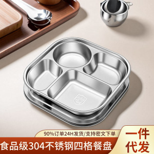 食品級の304ステンレスのファーストフードの皿は四角形の4格の成人の専用の食堂に分けて蓋を持って厚い食事の皿を打ちます。