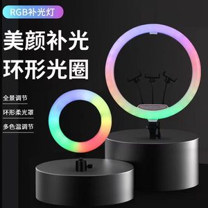 6-18inchライブ放送用リングライト、カラフルな背景雰囲気ライト、写真撮影用美顔カラフルRGB補助光