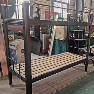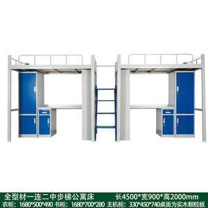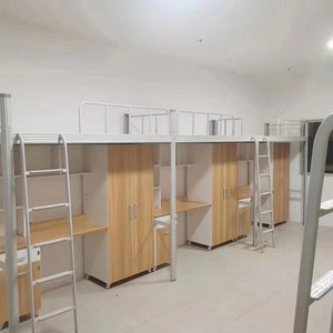 スチール製二段ベッド、上下二段鉄製ベッド、職員寮用高低ベッド、学校寮鉄製棚付きベッド、収納付き