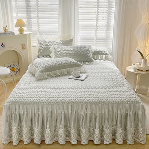 フレンチレース冷感シルクラテックス夏ベッドスカート宮廷風ラテックスエアコン三点セット
