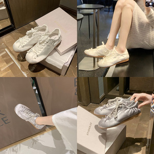 グレープママと同じスタイルの在庫あり〜バレエ風スイートガールラウンドトゥサテンスポーツスニーカーリボン付きカジュアルドイツ軍風シューズ女性用