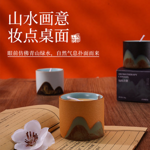 千里江山香薫ろうそくの新型熱売大豆ワックス家庭用陶磁器ろうそくの香りのお土産卸売り