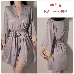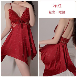 バラのような大きいサイズのパジャマは銀のサテンの軽い豪華な蝶を撒いて胸のパッドのサスペンダーのパジャマのスカートの上着の家の服のスーツの4415