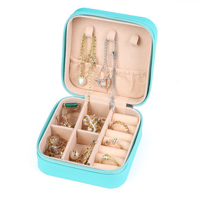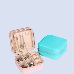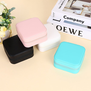 卸売りpu皮ジュエリーケース携帯旅行指輪ネックレスエレガントな小方箱アクセサリー収納ジッパーバッグ
