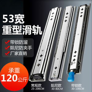 工業級53幅ダンピング重型スライドレール三節鋼珠静音スライドレール厚ダンピング緩衝レール卸売り