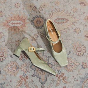 6368-12 クラシックな新しい中国風!レトロな中国風スクエアトゥ太ヒールサンダル、ワンストラップメリージェーンパンプス