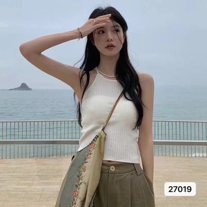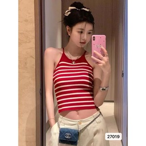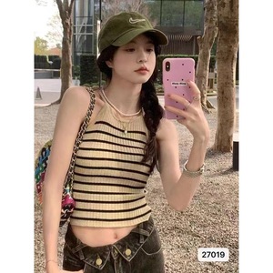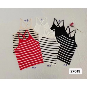 クロススリングベストレディース夏アウター春秋インナーレイヤリングシャツインストライプコントラストピットニットトップ