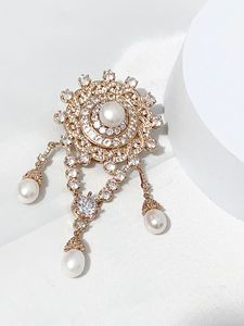 天然真珠フリンジブローチ、宮廷風レトロ銅製、ジルコンを微細に象嵌、厚金メッキピン、真珠胸飾り