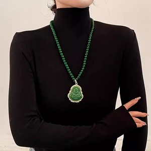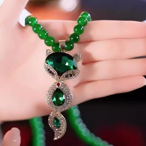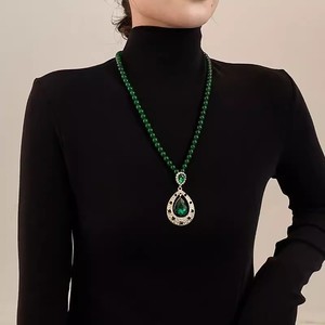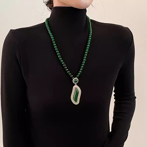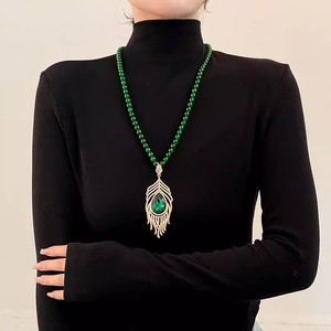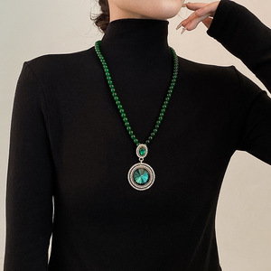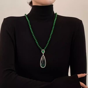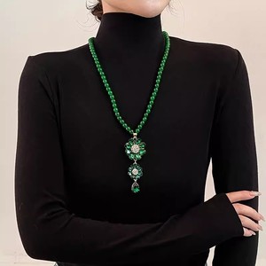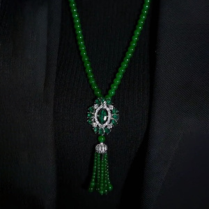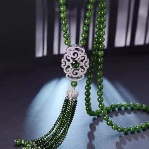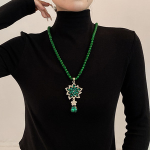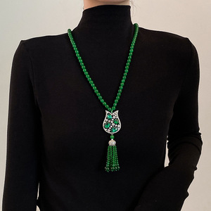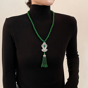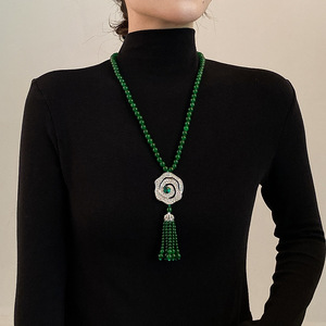 高級感のある緑の瑪瑙の毛のチェーンの大気の高級な長いタイプの国風のネックレスの女性のタイプの秋冬のペンダントのフリンジアクセサリー