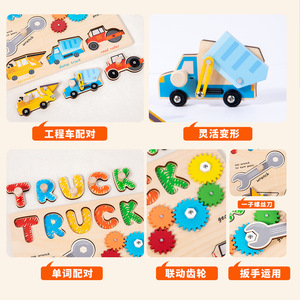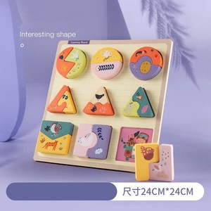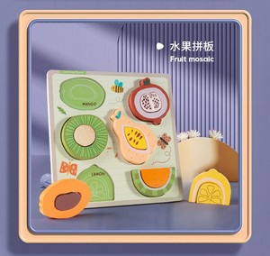 赤ちゃんの漫画の形の動物の色の交通の野菜のツールの手は木製のパズルをつかんで厚い積み木の板のおもちゃをつづり合わせます。