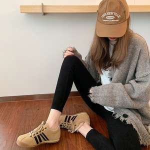 レトロなミス~メイラード風レースアップ本革スポーツカジュアルシューズ、ドイツ軍訓練靴風レディーススニーカー