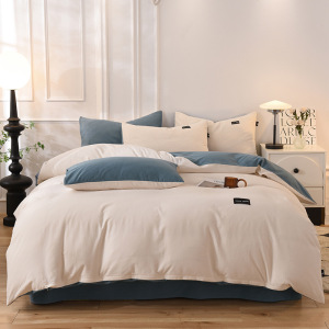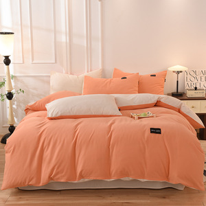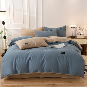 A級純綿起毛シングル掛け布団カバーAB版、コントラストカラー無地掛け布団カバー、学生寮、シングル/ダブル、家庭用、活性染料プリント