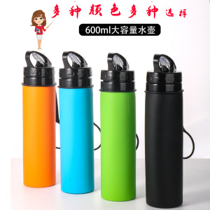 折叠硅胶600ml骑行水杯便携环保防碎硅胶水瓶 户外运动硅胶水杯