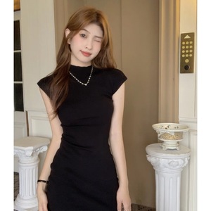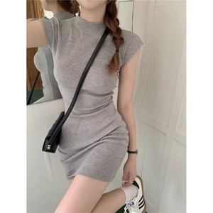 春款女装御姐风小飞袖针织连衣裙收腰显瘦包臀裙短裙子毛织工厂
