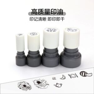 六連印鑑セット、手帳用ミニ白印鑑、気分を高揚させるクリームロゴ入り、正方形と丸型の日常用印鑑