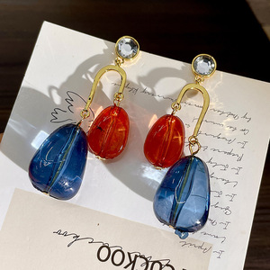 オレンジ色の非対称水滴イヤリング気質中古大衆デザイン感水晶イヤリング衝突色ピアス女性