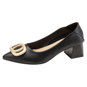 3一五センチの先の太さと靴の女性と春秋の新型の中で気質の柔らかい底の低いかかとの浅い口の瓢箪の靴のお母さんの靴