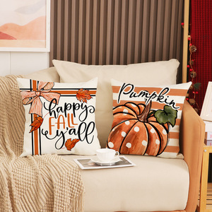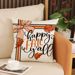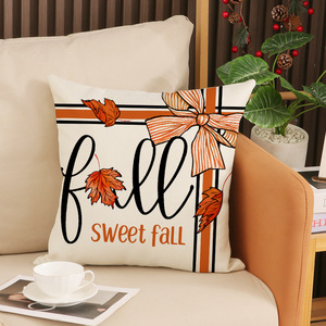 アマゾン秋の豊作ソファー抱き枕カボチャ装飾クッション亜麻プリントクッションカバーカエデの葉枕カバー