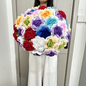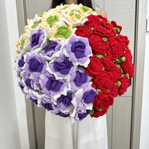 手编みバラブーケ高级感模造完成品花バレンタイン毛糸かぎ织り永生花祭りプレゼント