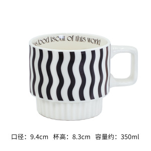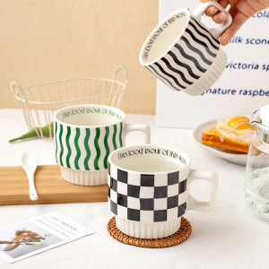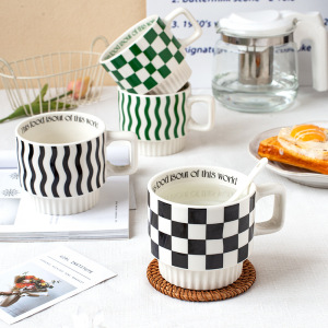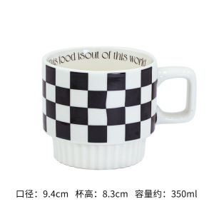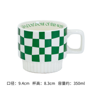 シンプル高级感スタッキングカップセラミックマグカップ碁盤格子ロゴ柄お土産プレゼントカップ代発