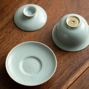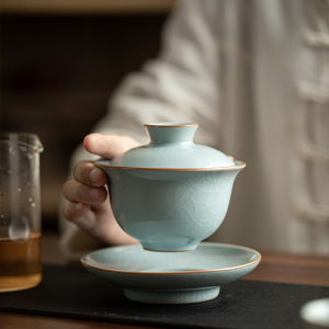 徳化茶道具天青汝窯蓋碗三才は手を焼くことができません。