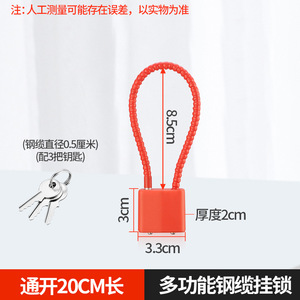 赤 全長20cm [内側高さ1ロック] 開かない、鍵3本付き