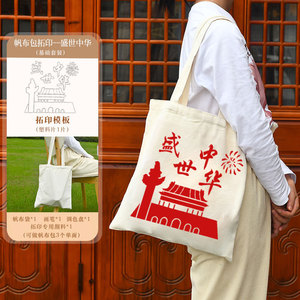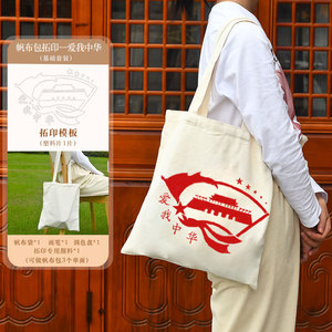 愛国的な手作りDIY転写キャンバスバッグ素材でリネンバッグを作る、落書き親子チームビルディング、建国記念日の記念品