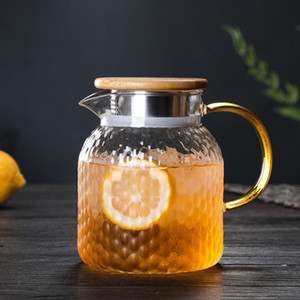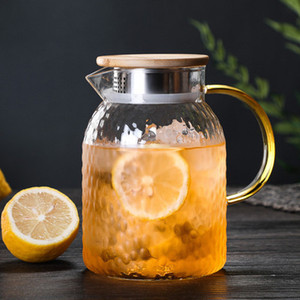ホウケイ酸ガラス冷水ポット米粒竹蓋ガラス冷水ポット家庭用ジュース飲料ポット大容量冷水ポット