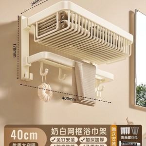 6310単層nb-ダブル折り畳みネットバスケットバスタオル棚-40 (ミルク白)