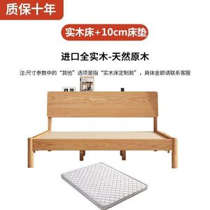 輸入無垢材-】無垢材ベッド+キャビネット1個+クッション10cm