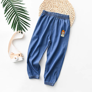子供用防蚊ズボン夏の薄い女の子の灯籠ズボンのシルク綿の中の子供のゆったりとしたカジュアルな男の子のデニムのズボン