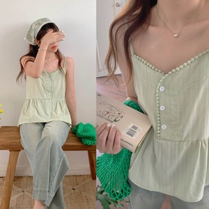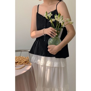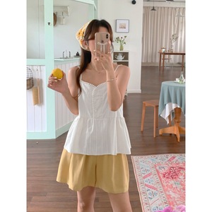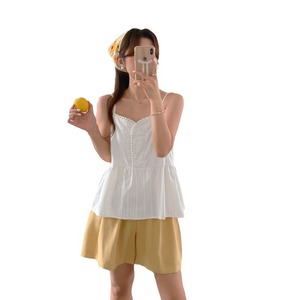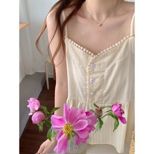 韓国版chi純欲レース単列ボタン綿質小ストラップベスト女性減齢純色百合少女上着