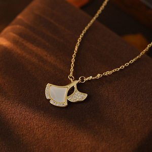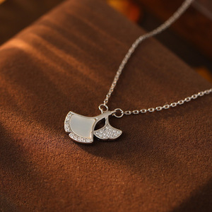 ガジュマルの木の下s925イチョウの葉の白い貝のペンダントのネックレスの女性の大衆の軽い豪華な扇形の設計の夏の新型の鎖