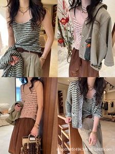春の新作、女性らしい上品で快適なカラーストライプニットキャミソール、ファッショナブルでトレンディです。