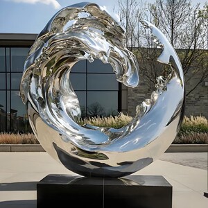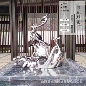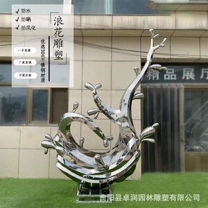戸外大型ステンレス水波彫刻鏡面伸線異形水景景観置物公園美陳装飾