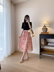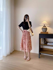 Lp高級女装砕花プリント傘スカートフランス式小衆スカート高腰痩せa字超仙半身スカート女性夏