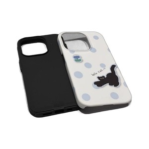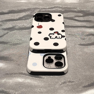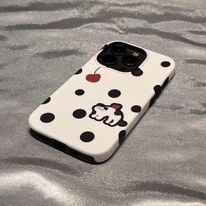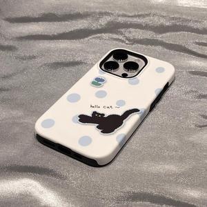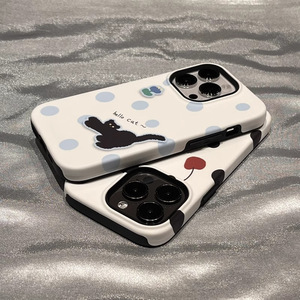 iPhone15/16promax/13/12 携帯電話ケースフィルム Apple 14/13 漫画水玉黒猫に適しています