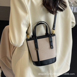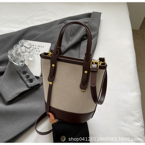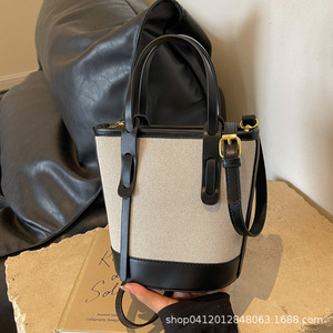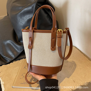 カジュアルな継ぎ接ぎキャンバスバッグ 2025年新作 ニッチデザイン クロスボディ バケットバッグ レトロ ハンドバッグ ショルダーバッグ 通勤バッグ