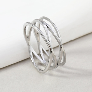 クロスボーダーヨーロッパとアメリカのステンレススチールリング、ファッショナブルでシンプルな中空ダブルクロスライン幾何学リング、トレンディで多用途なリング