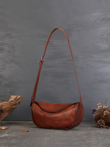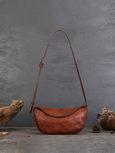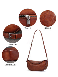 新商品の街頭のレトロなギョーザの本革の手作りの純色のショルダーバッグのトップ層の牛革の大容量の斜め掛けの女性バッグのファッション