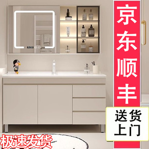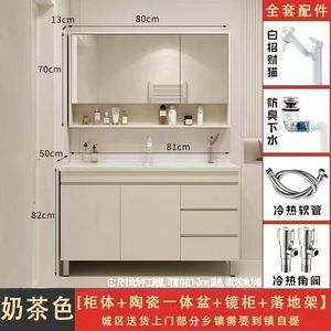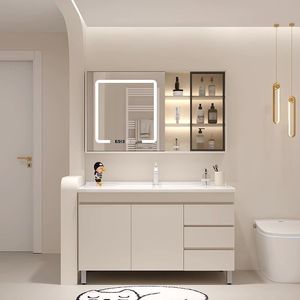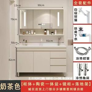 浴室キャビネットトイレクリーム風手洗い洗面洗面器実木知能シンプル洗面器陶磁器一体型洗面器