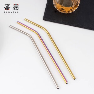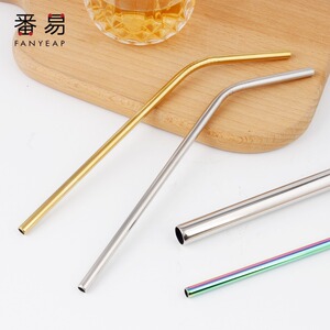 送料無料/ストロー/ステンレスA1V-タピオカミルクティー冷たい飲み物用非使い捨て再利用可能曲線型