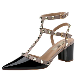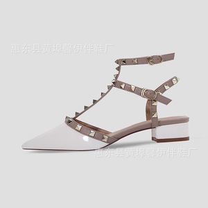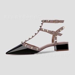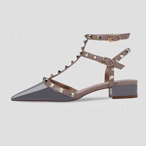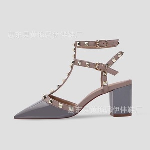 高バージョン2025年新型包頭リベットサンダル女性夏の先のとがった太さと低ヒール通勤ファッションハイヒール