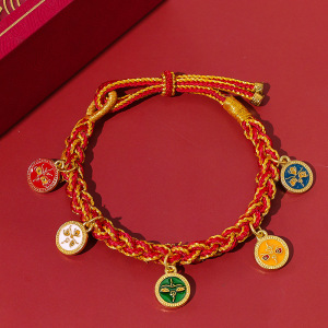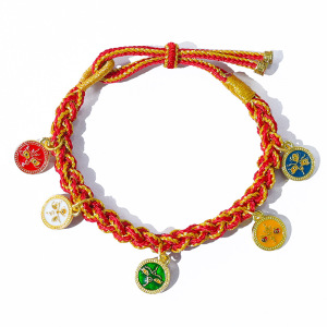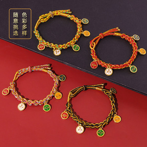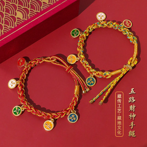 チベット風手編みカラフルロープブレスレット、五方財神ブレスレット、民族風アクセサリー、五色ロープブレスレット卸売